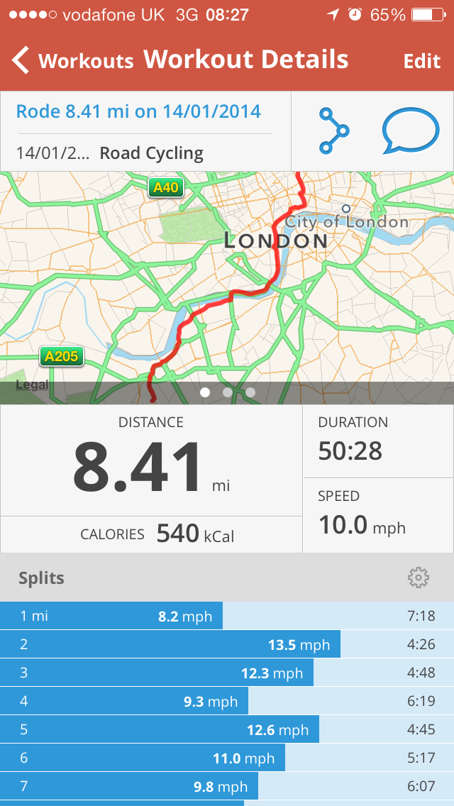 I had a bit of a false start on the weekend and didn’t manage to get out on the bike. However fresh from Zumbering last night I got on the bike for my commute this morning. As Map My Ride will attest it was a leisurely start but a start none the less.