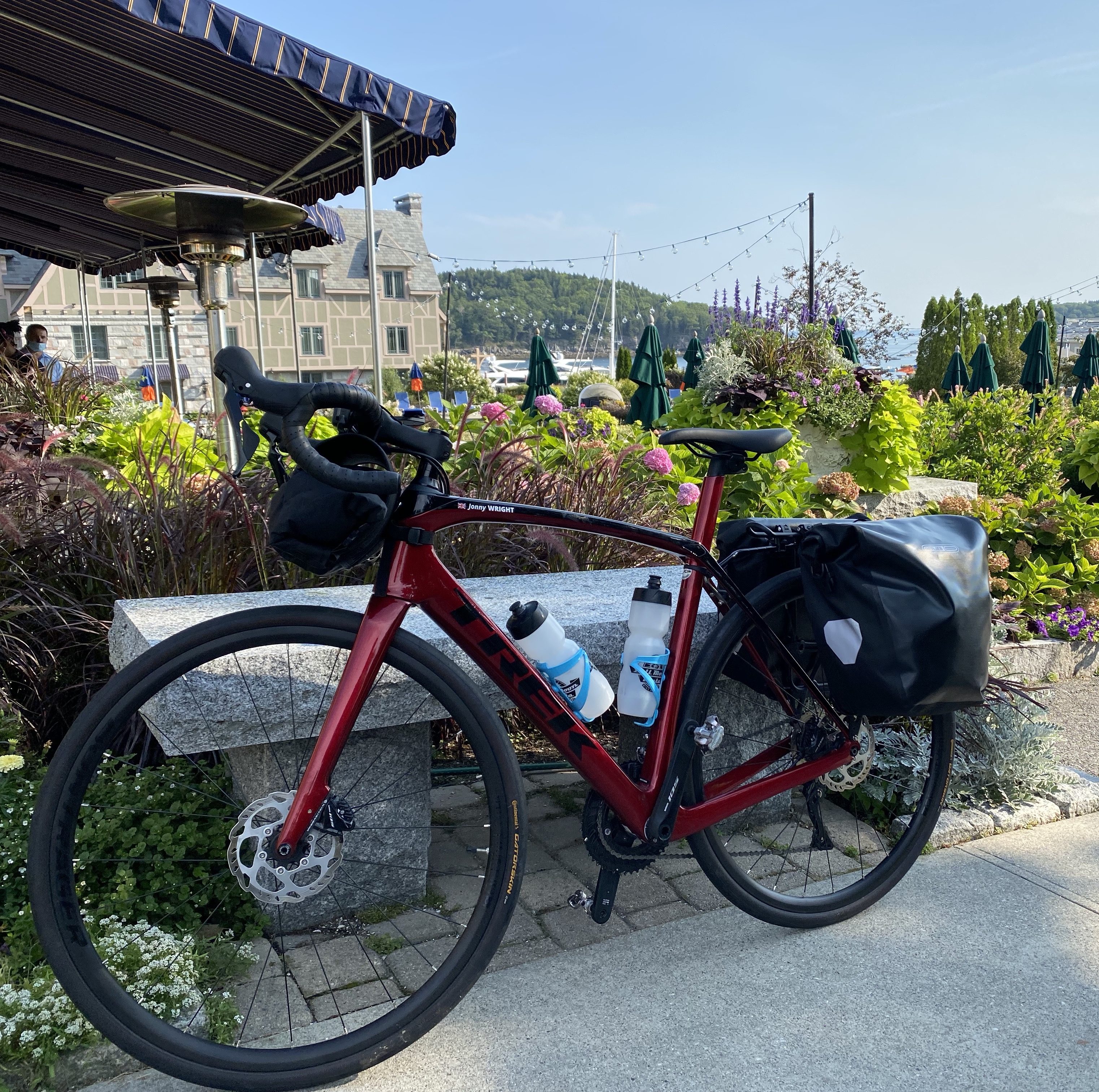 The Grand Depart. It was lovely to have Jules and the the kids there to wave me off in Bar Harbor on August 27th and then meet me at the end of day one in Searsport. That coupled with meeting up with a great friend and his family for dinner at the most magical of Maine garden/Pizza spots made the beginning of the trip feel like a holiday. It was from day two on, when I was alone, that the focus on the ride really began. The first thing was tweaking all those little things that I hadn’t thought about or indeed it was difficult to plan for until the ride actually began. Getting my packing right, adjusting the iPhone mount on the handle bars so I did’t sweat directly on the phone, having my lock attached to the rack so I didn’t have to fish it out of a bag every time I stopped etc. Over those first few days as my body got used to the riding schedule I began to feel more comfortable with my set up on the bike and I felt like I was adapting to the grueling ride ahead.