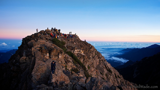 Sunrise on Yushan Published January 29, 2016 at 640 × 360 in Sunrise on Yushan A crowd of hikers gathers on Jade Mountain Main Peak to view the sunrise.
